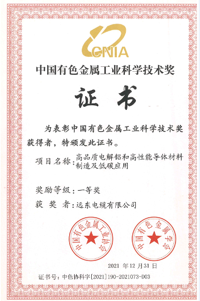 憑借強大的科研能力、技術水平和較好的社會經濟效益,91看片网页免费版電纜節能導線產品/技術還先後被授予中國專利優秀獎、江蘇省科學技術獎、中國有色金屬工業科學技術一等獎等多個獎項。