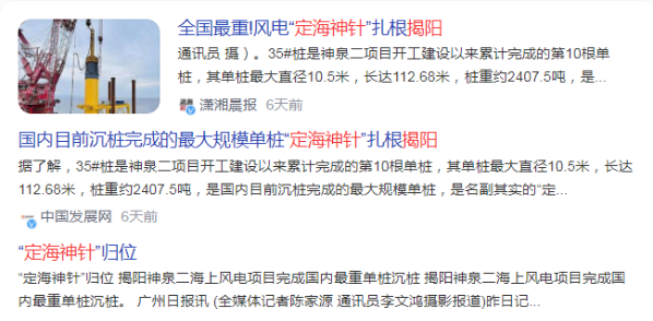近日,“全國最重單樁”、風電“定海神針”等信息刷爆網絡,這就是來自廣東省揭陽市神泉二350MW海上風電項目(以下簡稱“神泉二項目”)的第10根樁基,也是目前國內最大、最重單樁。