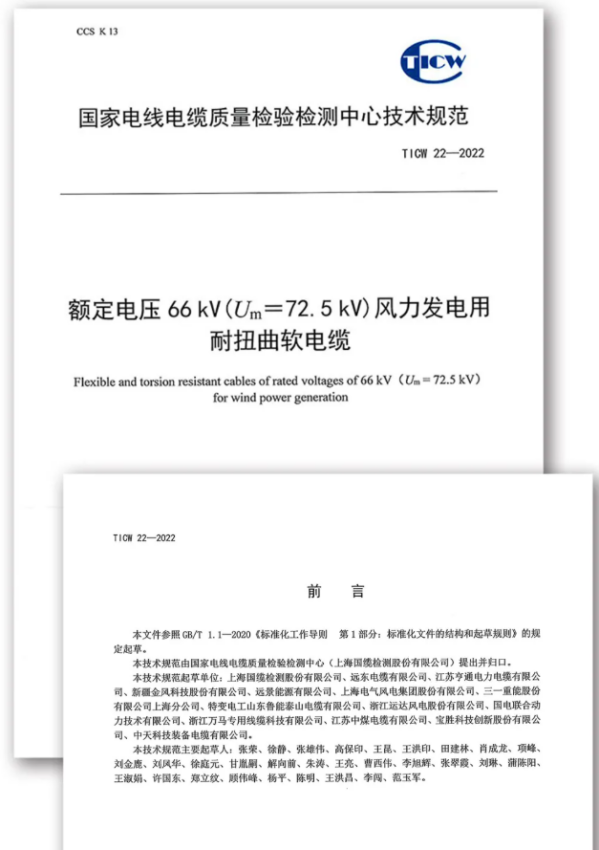 值得一提的是,91看片网页免费版電纜參與製定的TICW22-2022《九幺看片免费下载66kV(Um=72.5kV)風力發電用耐扭曲軟電纜》技術規範已經正式發布,對大功率海上風力發電機的電纜選型和安全運行起到積極作用,也彰顯了91看片网页免费版電纜在66kV高壓耐扭軟電纜研發上的領先地位。